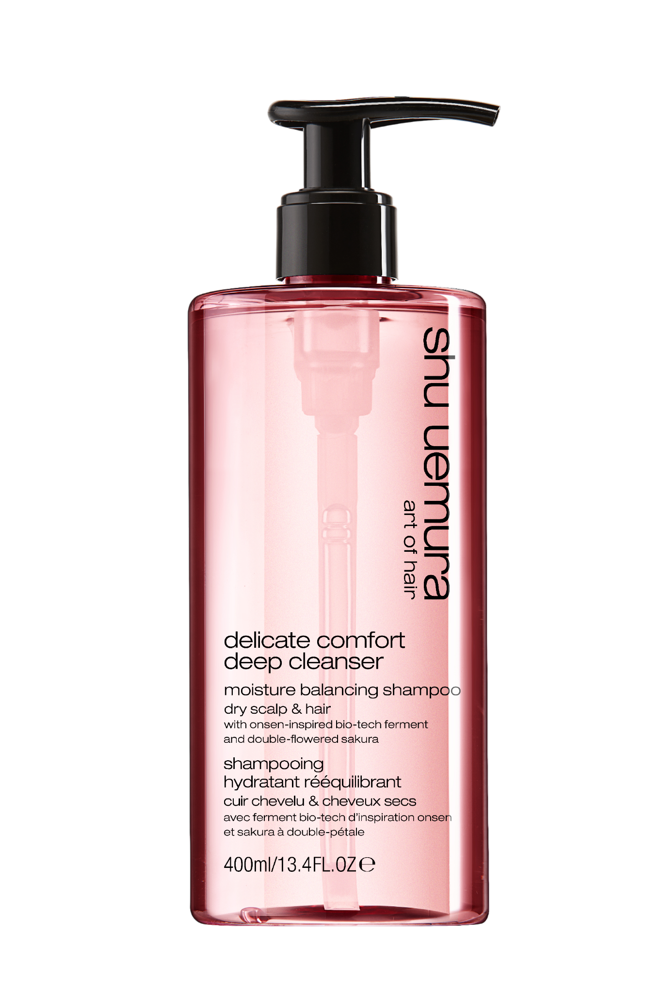 Shu Uemura Art of Hair Deep Cleanser Delicate Comfort Shampo berikad med onsen-inspirerad bioteknisk ferment och den japanska sakura blomman. detta schampo rengör hårbotten och hår på djupet för att avlägsna överflödigt talg och föroreningspartiklar samti